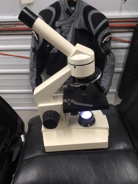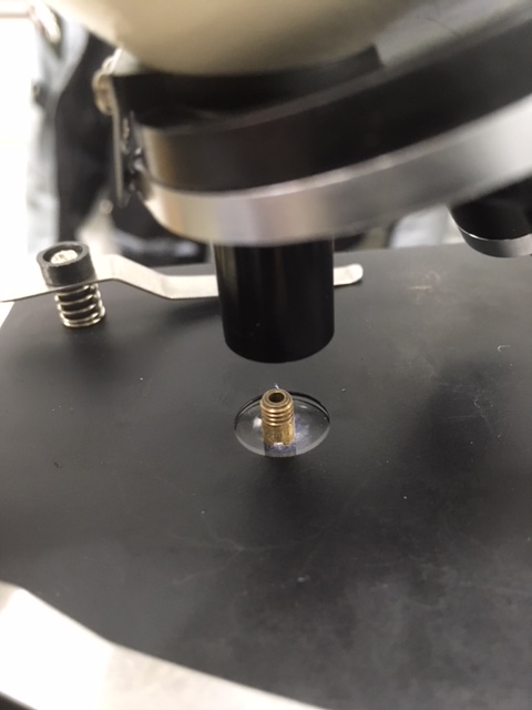 Nothing special about the microscope. Just a $150.00 single eye-piece - 400X. And yes....getting the light down that little opening with the turret right on top of the jet was challenging. The LED back-light was Ok for getting the orifice pictures. A separate light-source as close as could be obtained and shining down, got the inlet and outlet pictures.