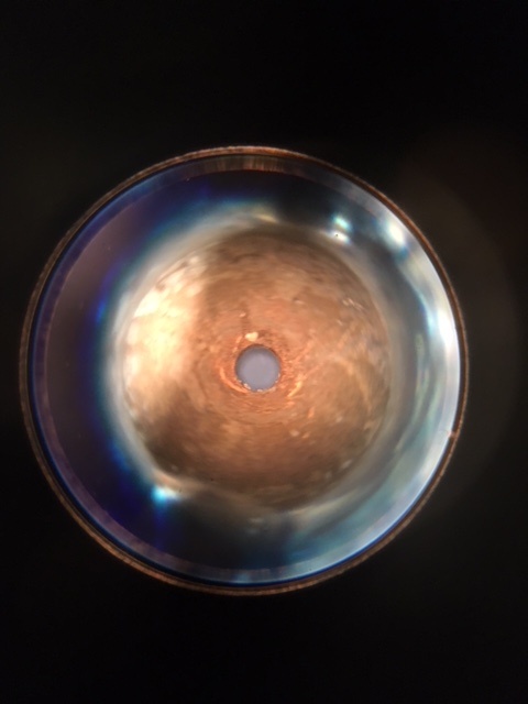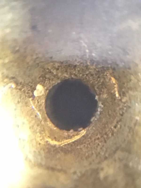 The pictures are of the 6 inlet and outlets of my 38 year old original idle-jets. 5 in remarkably good condition. One is badly decayed on both ends. The picture of "the bits and pieces" are what could be loosened with a strait-pin with no scraping from the "bad" jet. Note the last two ! From what I can ascertain from some "reading" :The white specs are due to Ethanol reacting with the brass. ALL jets had some of these white "crystals".