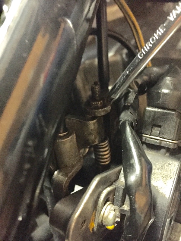 Can anyone tell me what this adjuster is for, I cannot find any reference to it in the manuals, although when I close the throttle it moves down, I am setting up my throttle cables and the manual states there should be no gap between the lever and the stop and if there is it can be adjusted with the deceleration adjuster at the throttle unfortunetly it will not close the gap, is this what the adjuster in the pic is for.