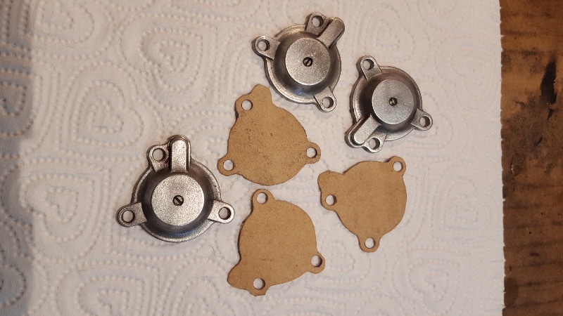 Next I made gaskets for each of the of the 3 Enricher Circuit Diaphram Covers and fitted them without the Diaphram and Spring.