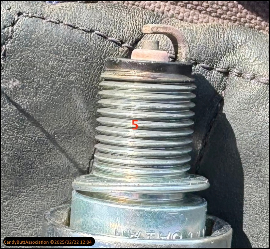 Plugs 6,5,1 after running at 5k, killing ignition, coasting in, pulling plugs.