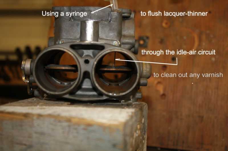 NOTE: The seals on the throttle shaft ends could be damaged if soaked excessively in strong cleaners such as lacquer-thinner. The use of lacquer-thinner for manual surface cleaning and gallery flushing using a syringe is OK.