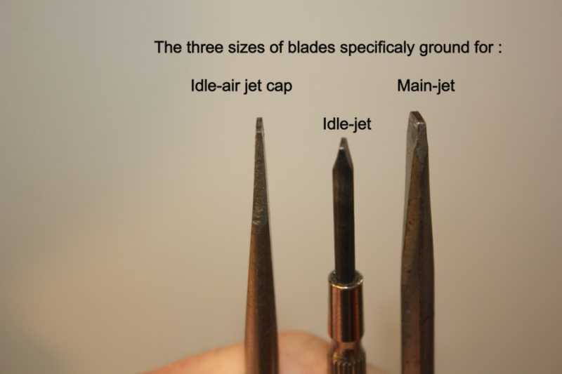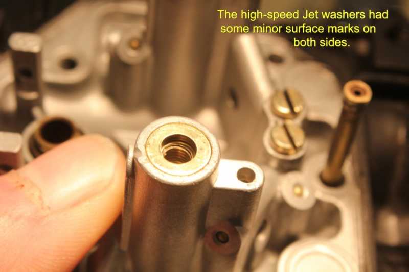#1 NOTE: There are are number of internet articles regarding the very specific design and machining of fuel jets. These articles state very emphatically that when cleaning jets, attention be paid to not changing any shape to the entry and discharge-end bevels and steps that are specifically designed into the jet for optimum fuel dispersion. This includes the smoothness of the jet bore which is factory "reamed" for smoothness and perfect symmetry - not simply drilled. If in doubt - Replace !