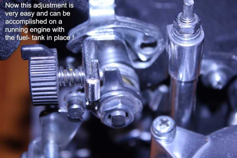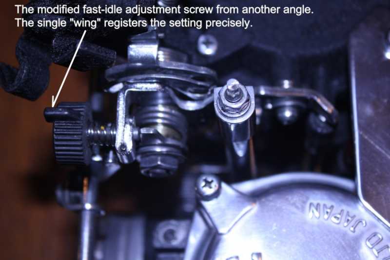 #3 NOTE:When choosing a knob for the fast idle screw mod. it's recommended the dia. not exceed 5/8" to avoid contact with the fuel-tank while operating the throttle. Insulation in the linkage travel area should be removed as well.