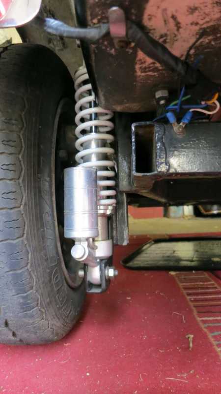 The leading link front end is modelled on the Bob Martin engineering unit but with improvements. Front brakes are fully floating. This eliminates the rise of the front under braking as with Bob Martin's unit.