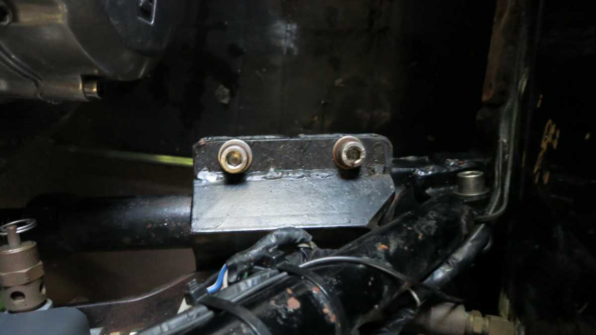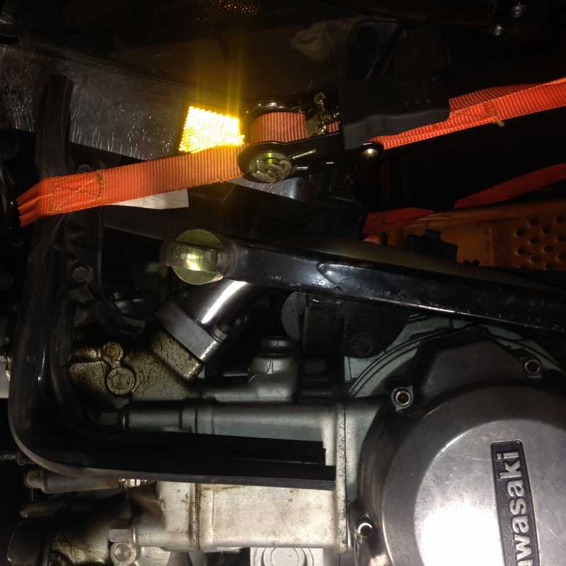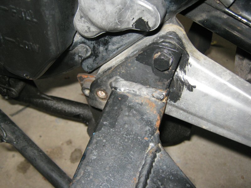 The front mounts were my concern. On my '83 I actually Tig welded the front upper mount to the frame rail so the strut just disappeared into the fairing through those vents. This time I had sort of planned a modified right crash bar with the lower mount incorporated into it. Those crash bars are fairly rugged and mount at three points, and with some gussets would be plenty strong enough.