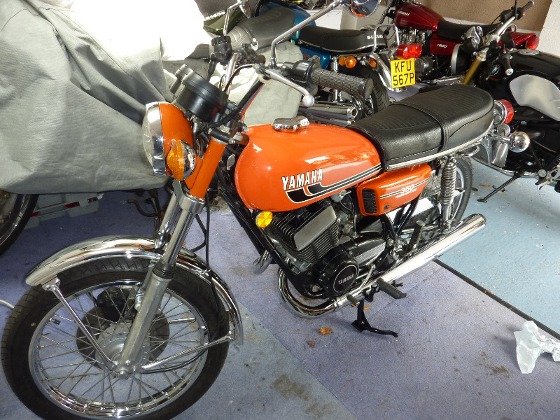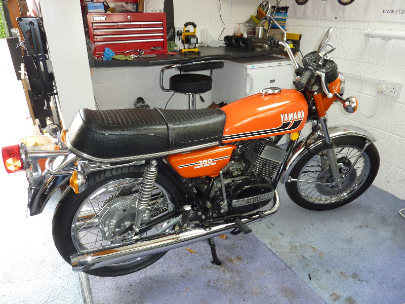 Well, I finished my Winter project and the "tiddler" is completed (almost). I took everything off that can come off: polished the hell out of everything, fitted new tyres, chain, bearings, bushes etc etc, tried my best not to do too much re-chroming, so just did the front mudguard and exhausts as they got dented in shipping