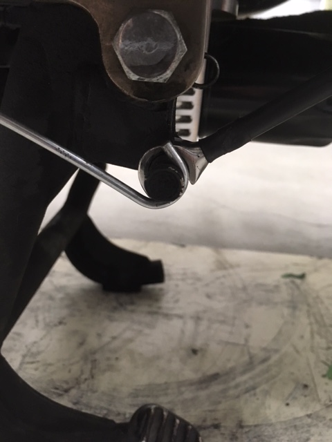 A "latch-bar" stops the bike from being "bumped" off the center-stand.