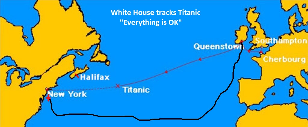 FUX NEWS: President Trump has announced today that after an exhaustive investigation by his top advisors and marine experts: "We have concluded that there was no iceberg, the boat has merely been delayed by some "Nasty" weather, has not completely sunk and should be arriving in port, any day.