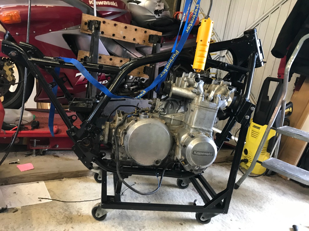The lift I got relatively cheap from an auction when the local bike shot closed up. Between the lift stops and ratchet-strapping the bike down, it worked really well- I was able to whale on it enough to pop the races out, and it never moved. And the difference in handling is night and day. The guy I bought it from had the full Vetter tour package on it, so worn out head bearings weren't that much of a surprise. What WAS a surprise was how much a fresh set (from All Balls, would highly recommend) improved the ride. Before the bike had a bad tendency to track in big, slow arcs left and right that was really disconcerting, and just feel as super-heavy as it is. Now? Well.... I would never call a KZ1300 "nimble", but once at speed it feels as reasonable as a "normal" bike.