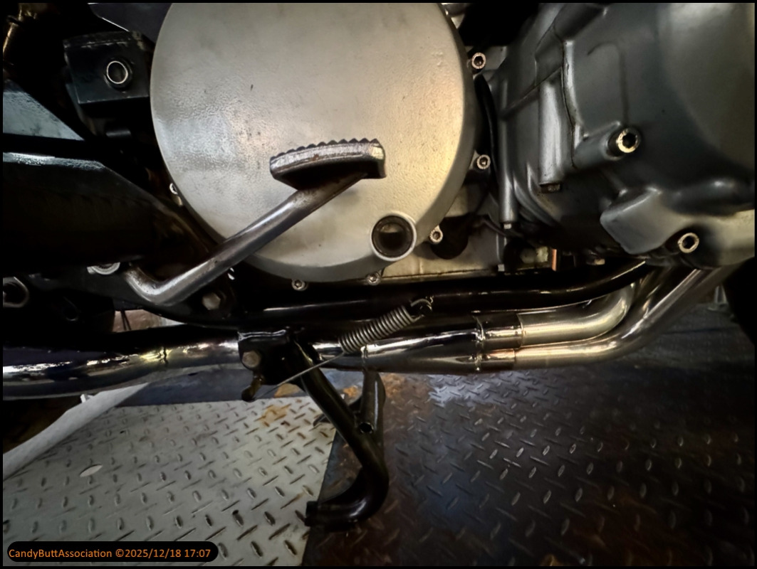 To get this bike on the center stand, I have to place the rear wheel on top of a half inch piece of plywood.