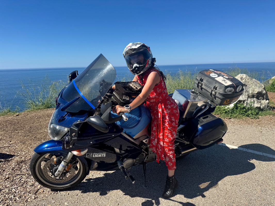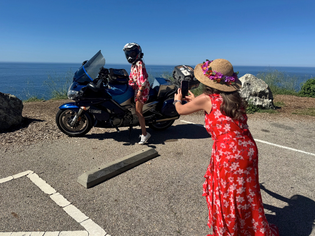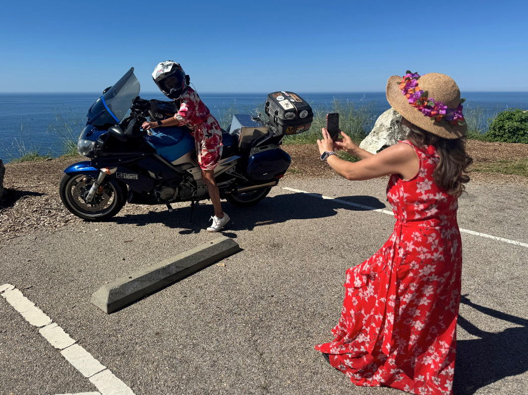 Fun ride up the coast yesterday. These ladies were enamored by the beauty of a painter's-taped 2006 FJR and asked if they could take a picture of it.