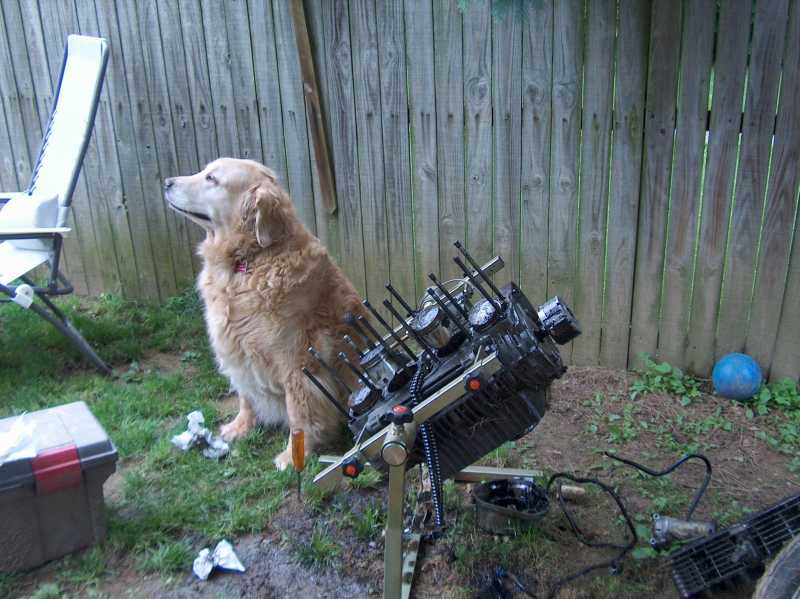 Dodger is my girl, she watches from the yard while I tinker in the garage.
