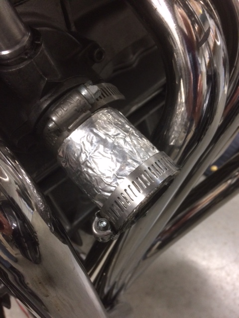 With the header-collector "double-wrapped" you can actually touch it. It gets very warm but won't burn. You can appreciate how much cooler this keeps the oil! About 8-10 degrees C. by my oil temp. gauge.