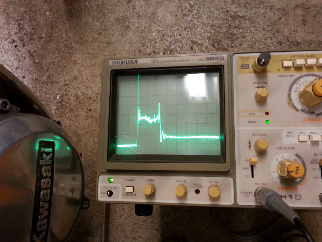And here once more when all is fitted in the bike and hydrocarbons are present. Spark is about 2 milliseconds long, the coils are not getting any hot so the ignition modules.