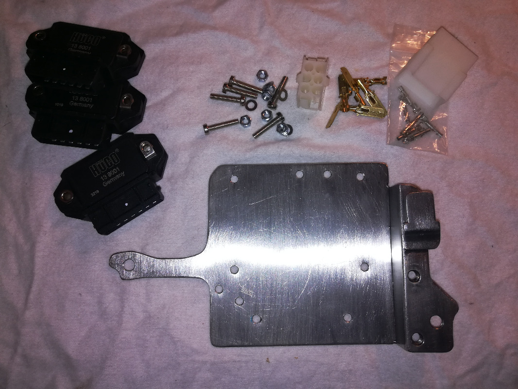 My only comment at this point would be to question the use of a stainless steel for the mounting plate. The Huco module has a metal backing plate similar to the 4 pin HEI modules previously pictured and all of them require a heat dissipating paste on the back side to transfer heat from the module to the mounting plate to keep the temp down in the module. I'll assume the Huco module requires the same. The reason I question the stainless steel mounting plate is due to the lousy heat transference of stainless and I wonder if the stainless will keep the heat down in your modules.