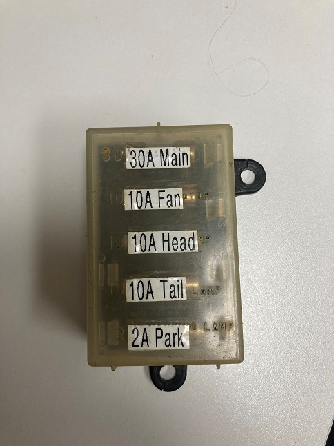 Replaced some time ago for an 8 circuit "Bladed" fuse holder, Last night I eventually found my original.<br />The cover does have the Amp ratings as Kawboy indicated. The labelling just made it easier to immediately read the required ratings.