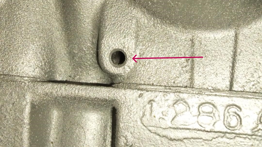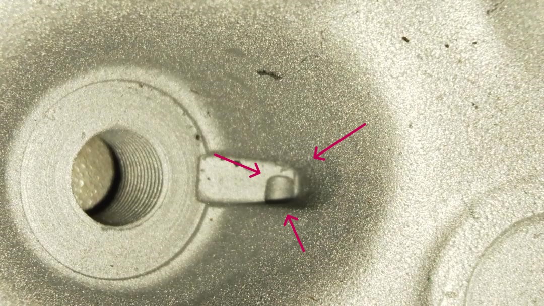 In this photo you can see the drain hole next to the spark plug thread.