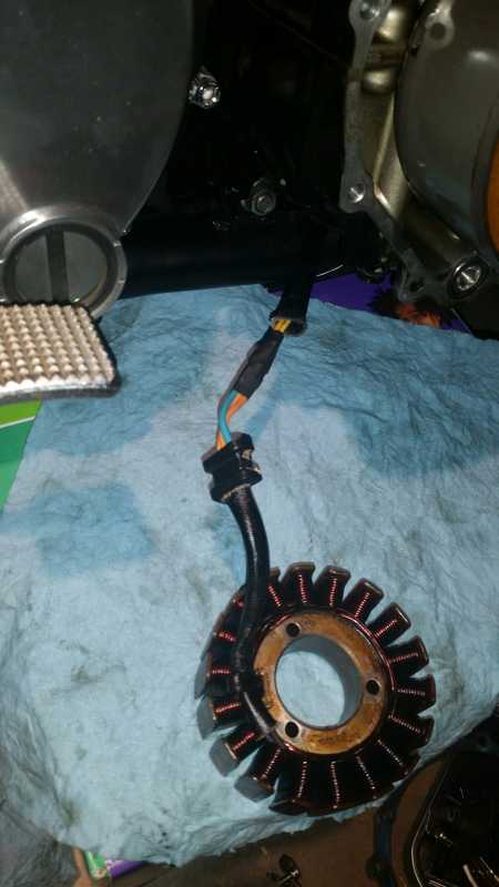 I had noticed an oil spot where its parked, and assumed was the stator cover gasket or the wire grommet. What I didn't expect was that the leak was through the wires themselves. The old wires had gotten hard and brittle where they pass through the rubber. Actually found one was cracked.