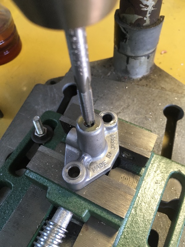 After reading a few posts It might be smart to add more material to the back of the tensioner (or a nut on the inside) since it’s really thin back there, I would say I can see about three threads, question is, how much force dose this screw needs to hold if the tensioner fails. I have a friend that has a TIG welder so it’s somewhat easy to add a few mm to the back, then drill and tap again.