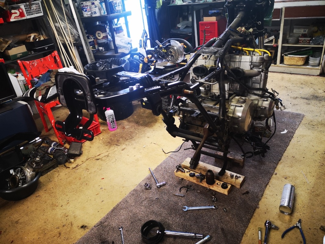 I'm here, I need to re-paint parts of the frame and the engine. I'm looking at it and thinking I should take that engine out really.
