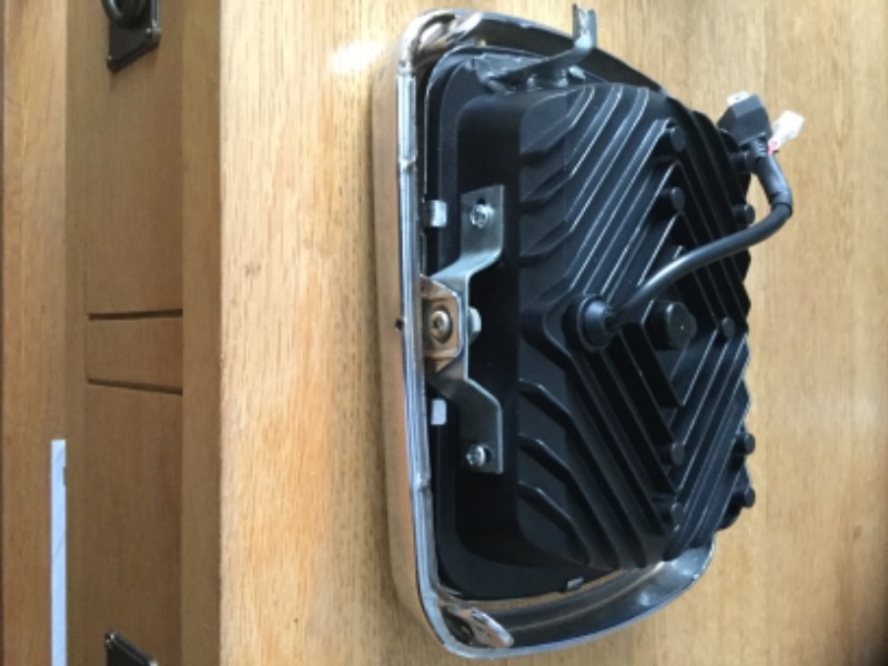 What I wasn’t sure of is how this light would fit into the existing headlight chassis so took a chance thinking how hard can it be. The main problem is there is no brackets on the new light to secure it to the chassis. There isn’t a bracket for the headlight adjuster either. The main brackets are from some brackets used to suspend house light from the ceiling.