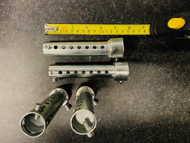 They are 14cm long and on their own don't do much as there are just holes, no baffles, so they need wrapping. The rear bit can be adjusted to restrict it even more, but I'll leave it on the longest setting for now to let as much air though as possible.