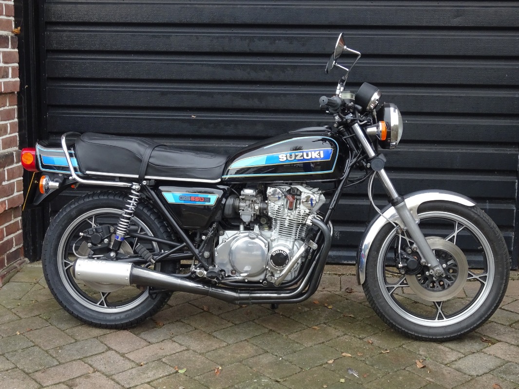 This is my GS550 after the renovation - took 6 months working 2-3 days a week and well over £1000 on spare parts. Full strip and repair, repaint and rebuild with all seals in the engine, brakes and carbs replaced. Runs very well and also now registered as a "Historic" vehicle in the UK as its over 40 years old.