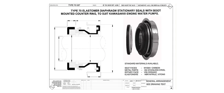 2 years 9 months agoThis is a design drawing from Zed-Parts website of the mechanical seal. You can see the bellows that seals the carbon face to the metallic housing that gets pressed in to the aluminum seal housing. This really is a complicated way of sealing the stationary seal face (the carbon face) to the housing. Instead of a stationary face with an oring between the outer diameter and the housing, in this design there is 4 seals that have to work in order to seal the stationary face to the cylinder block. There's the seal between the metal ring of the stationary seal, both ends of the elastomer bellows and the oring between the seal housing and the cylinder block. There's also the seal between the rotating face and the impeller and finally the seal across the seal faces. So in total there are 6 possible failure points in this seal design.