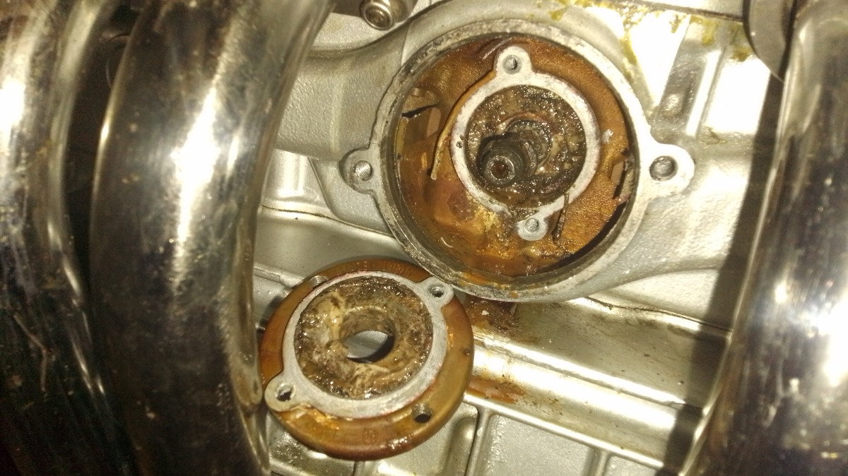 The biggest surprise when buying this motorcycle was finding water in the oil when draining the crankcase. Before lifting the cylinder head, I dismantled the water pump and found the mechanical seal broken, the oil seal was also in poor condition.