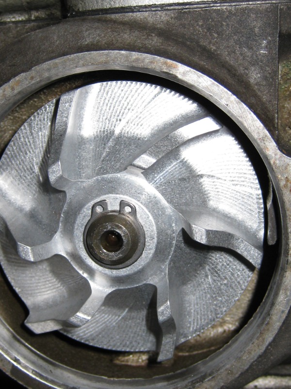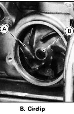 This is the pic straight from the FSM and cropped / exploded for better viewing . This what it should look like. Note the inner edges of the ears are parallel to each other.Sometimes what I've seen happen if the shaft is soft, as the circlip is being installed it can cut a slight burr on the edge of the circlip groove and fold it inwards then leaving the circlip not fully engaged in the shaft. If that clip pops off, the impeller will drive itself in to the housing cover, and you'll be on the side of the road calling for a tow truck.