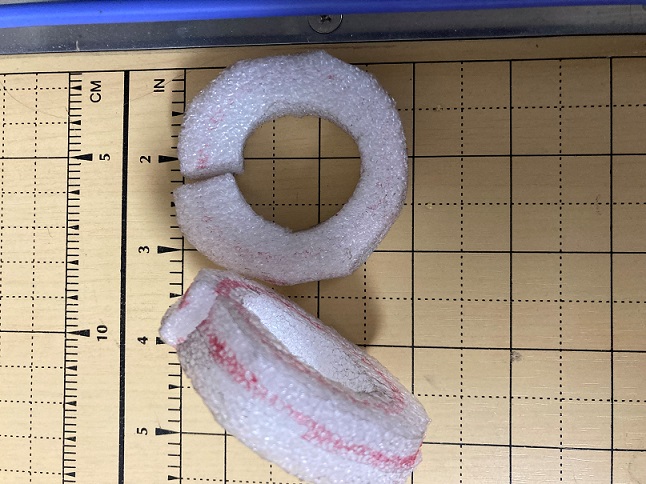 I made these years ago. Closed-cell foam - one on each down-pipe and held in place by a small rubber-band. They hold the "exhaust pipe holders" in place for assembly. When done - cut the rubber-band and removed easily.