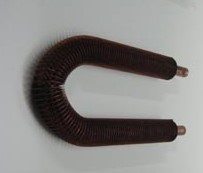 A U-shaped finned tube between the two holes in the crankcase and the engine block ,taking advantage of the width of the engine.