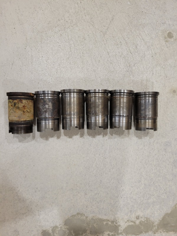 This is a pic of my 6 liners. 5 have been cleaned up and 1 was in the state as found when pulled from the cylinder block.