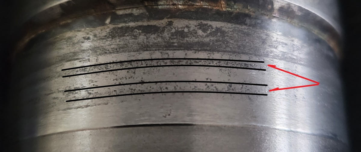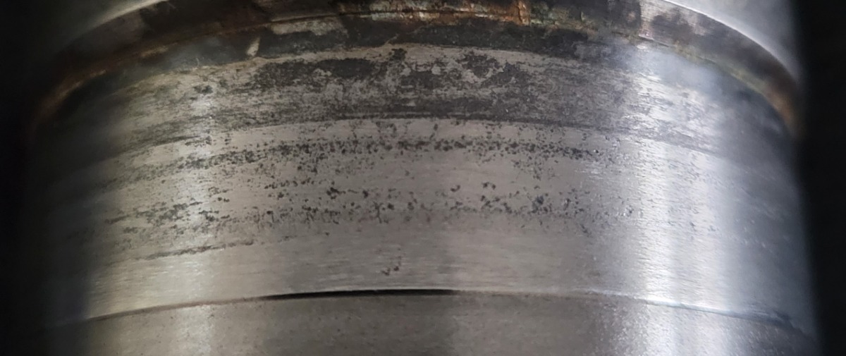 This pic shows the o ring sealing area around the bottom of the sleeve where 2 o rings are meant to seal. Pitting is evident and I am looking for ways to "fix" the pitting. Still doing research on this aspect.