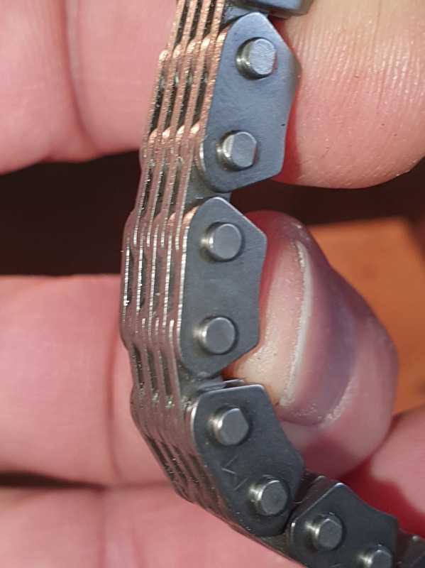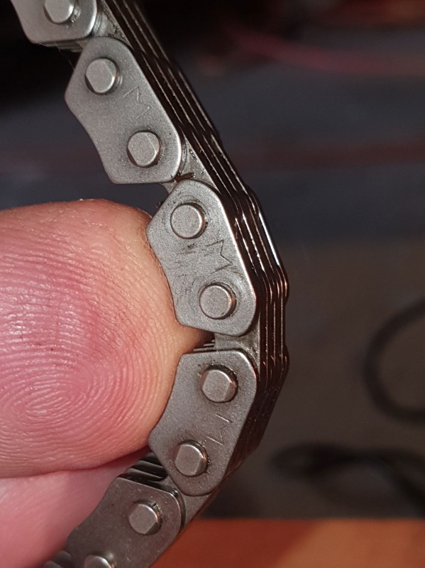 Many thanks KB. I did send a query off to MCG who supplied the cam chain and links. They indicated that only the pins on the side the plate was pressed over needed to be riveted, the pin ends on the other side will be "automatically compressed". Well I did this slowly, in multiple steps on each pin, checking joint movement and link width each time. Then I couldn't save myself from giving the pins on the other side a couple of tweaks as well. The joining link is a few thou narrower than other links (which seem to vary a bit anyway) but moves freely so hopefully all good. Did need to reduce diameter of the Buck nose so it fitted between adjoining pins, and centered the rivet tool, but never tightened it against the plates. Way too stressful so spent the next day removing gaskets - tedious but much more straight forward.