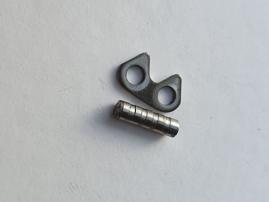 I didn't trust myself to break the old cam chain and install joining link in new one, over the engine - even with the sump off there was just too many places for those tiny link plates to hide if they slipped past the rags, or fell through when removing the rags. So I did everything in front of the engine. After threading the new cam chain through (on end of the old chain, after breaking both) I had both ends hanging down over the front of the engine. Then made up a simple platform with wooden blocks, a few centimeters below the top of the engine cases, so I could work on the ends with one hand while manipulating plates and pins with the other. Hopefully the photos will help explain (recreated using old chain and stuffed joining link). Hold both ends together with fingers of one hand, insert joining link through first couple of plates, then insert first of the three intermediate plates so that it is aligned but resting on the joining link pins. Hold that plate in place with a third finger, pressing down slightly, then gently ease back the joining link until the inserted plate pops down and giggle the joining pin through this to next couple of plates, repeat for second and third plates. As the final outer plate of the joining link is a press fit, it wont easily sit in place so I used a dab of assembly grease to hold it there. The platform was also handy for resting the riveting tool on so you didn't need a third hand. And I used small fine grinding wheel on the Dremel to take the heads off pins before pressing them out to break the chains - made it a lot easier. Hope all this helps the next person. Oh, and if you think your old cam chain is just on the service limit (length measured between 20 links) like mine was, it will be ok, check out how worn the pin is from my old cam chain!