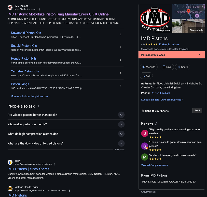 I searched the site didn't respond so I searched "IMD Pistons" this what I came up with