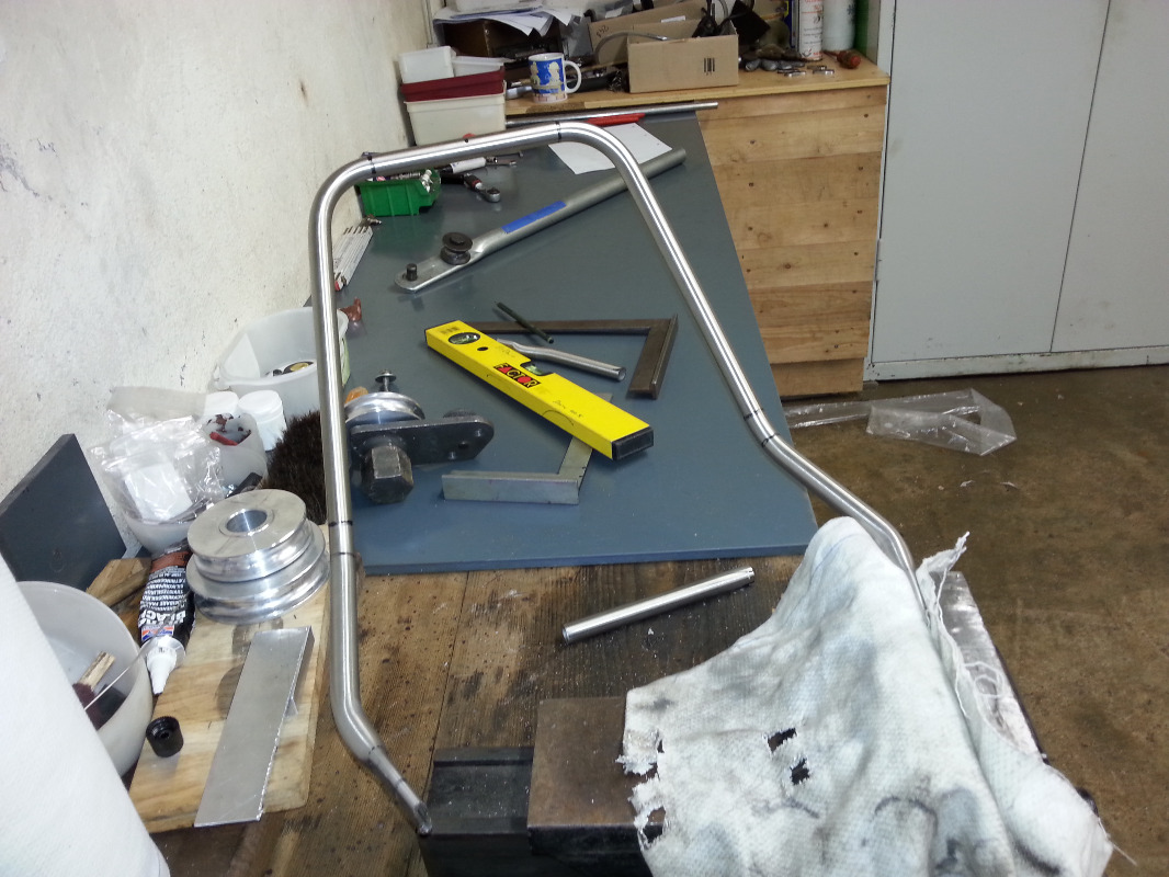 Stainless steel pipe. Got the pipe bender at home so i thought why not to do it my self. The biggest problem was, the brackets under the seat, basically to get them to fit properly because there is very little space to deal with.