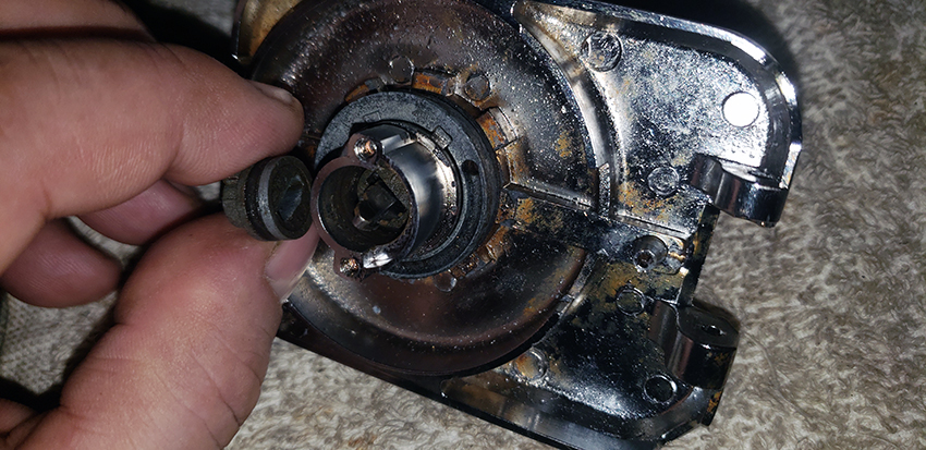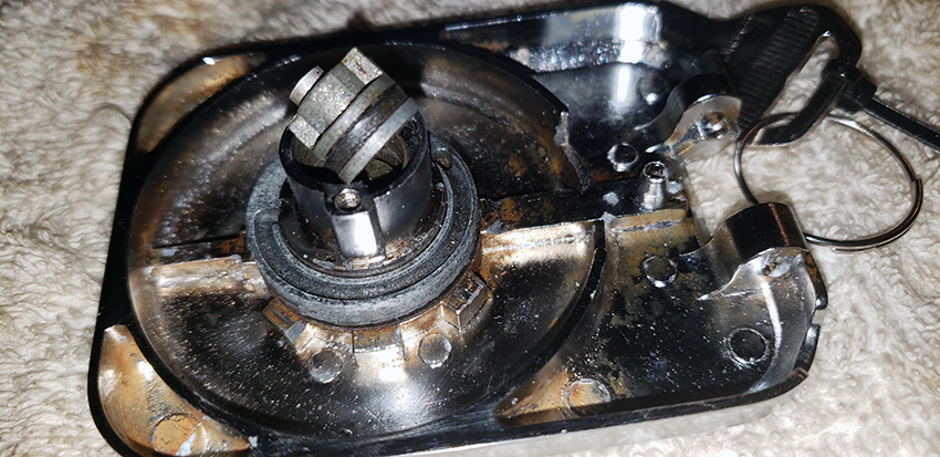 There is a drum in the middle as you see, and that drum rotates when turning the key and opens the latch. This wasn't moving, so I thought perhaps the key doesn't fit the lock, or those little knobs inside the key drum are stuck. Wrong!