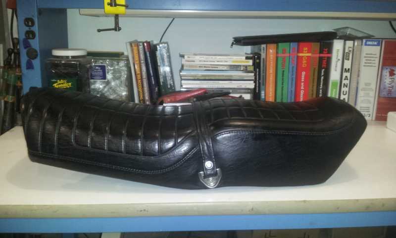 I've got a 1980 KZ1300 I'm doing my best to get back to stock condition, and that means at some point I'm going to have to do something about the seat. Right now it's got the touring option from 1980- sort of a dual-bucket thing going on. The seat pan is solid, though, and I plan on taking it to a local upholsterer to get it re-shaped inline with what the stock setup was.