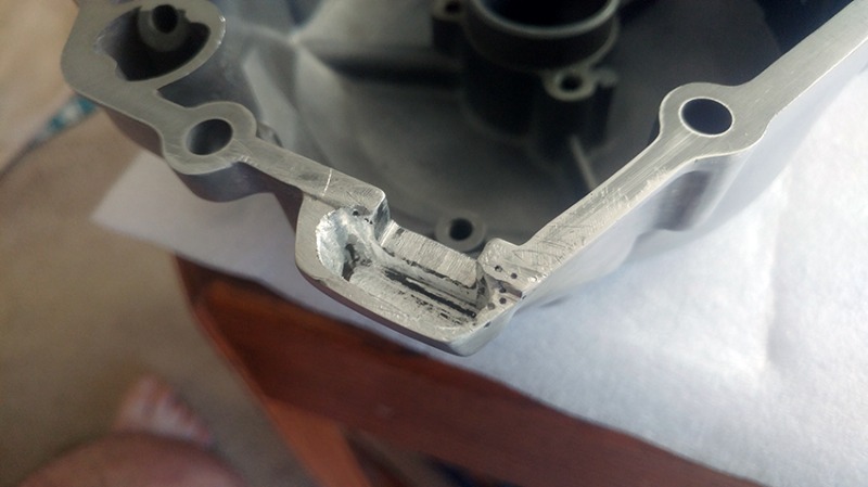 If anyone remembers, I had a side cover that needed some repairing. The chosen plan of action was to have the wall build up tig welding. Here is how it looked before the 'repair'.