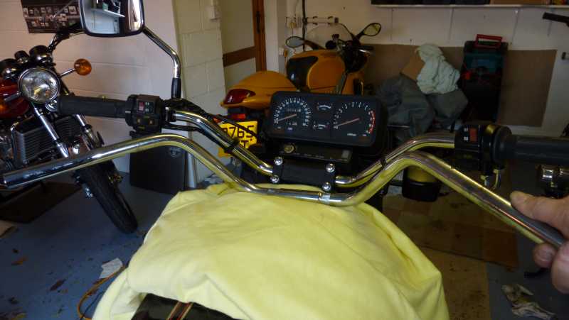 Anyway, I had a set of NOS Suzuki GT750 Bars surplus to requirements and when I offered them up to my Zed was very pleased with the almost identical height & width, with a much more familiar pitch to them.