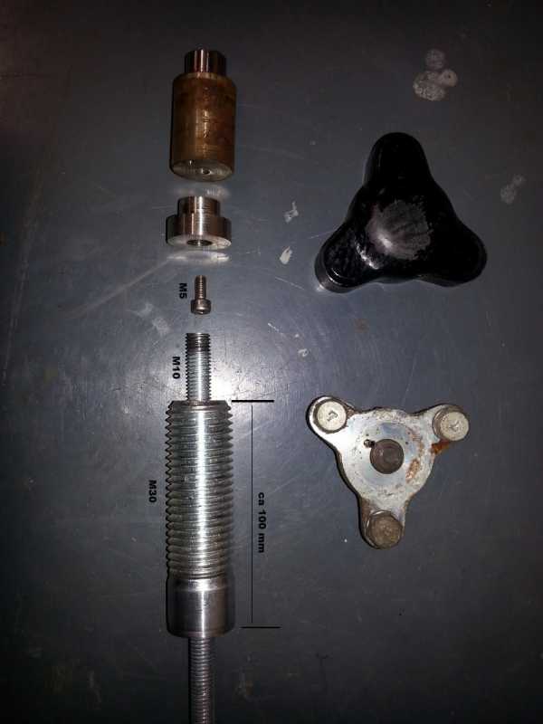 Hi I have had this problem already longer, but until now I never got to do it. So when riding the bike over the edge, like street to bridge crossing where there is a height difference I suppose, and light corner I get this terrible swaying of the bike, or better to say, wobble and wave beyond the imagination. Leaning forward on the tank cures the effect but I can't possibly lean forward forever, he he. The higher the speed, so is the effect stronger. The rear shock absorbers silent blocks are well.. not the best but I can't imagine it could have such great impact on stability, the rear wheel bearing seem to be ok and the front steering stem was taken care of also the front wheel bearing. Oil level in the front fork unknown. So my second thought was the swing arm bearing. As I already read the pivot shafts are quiet hard to remove so I got carried away and build this tool to remove them and it worked pretty well so I post here. I thing the pictures are self explanatory, everything its made out of material which was lying around. The difficult part is the one involving cutting the inner thread M10 in adapter. The rest is straight forward. Also maybe someone can share a light on from where else the wave can come from.