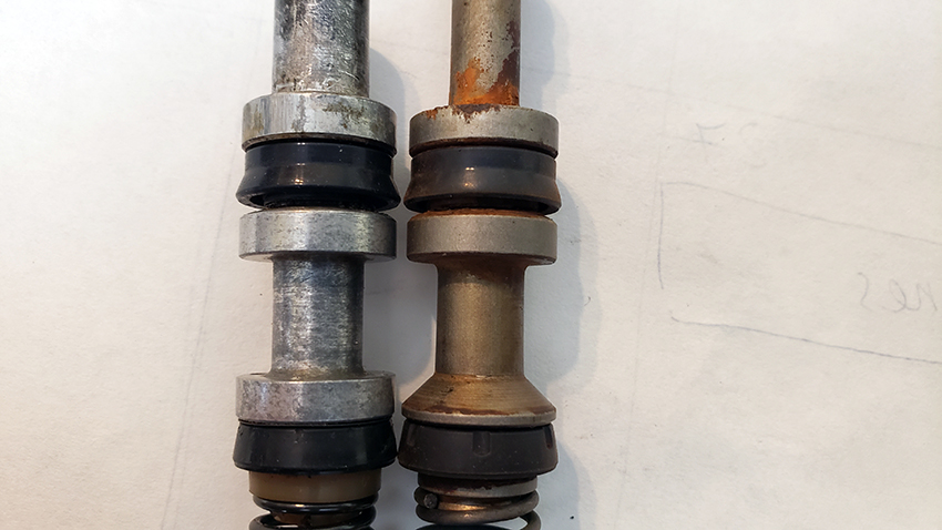 The groves in the front lower rubber - I haven't seen it in another master cylinder so that's definitely not an issue. If I remember correctly, the rebuild kits don't have them as well.
