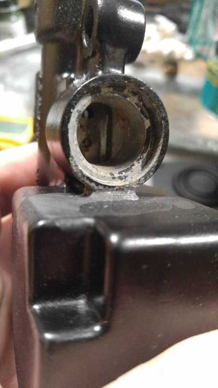 Now assume they (I) didn't realize that the access hole used to drill the two smaller holes into the bore was sealed by a plastic plug.