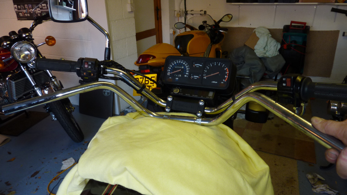 I did not like the turn in of the Kawa orignal bars, and also fitted a set of Suzuki GT750 bars