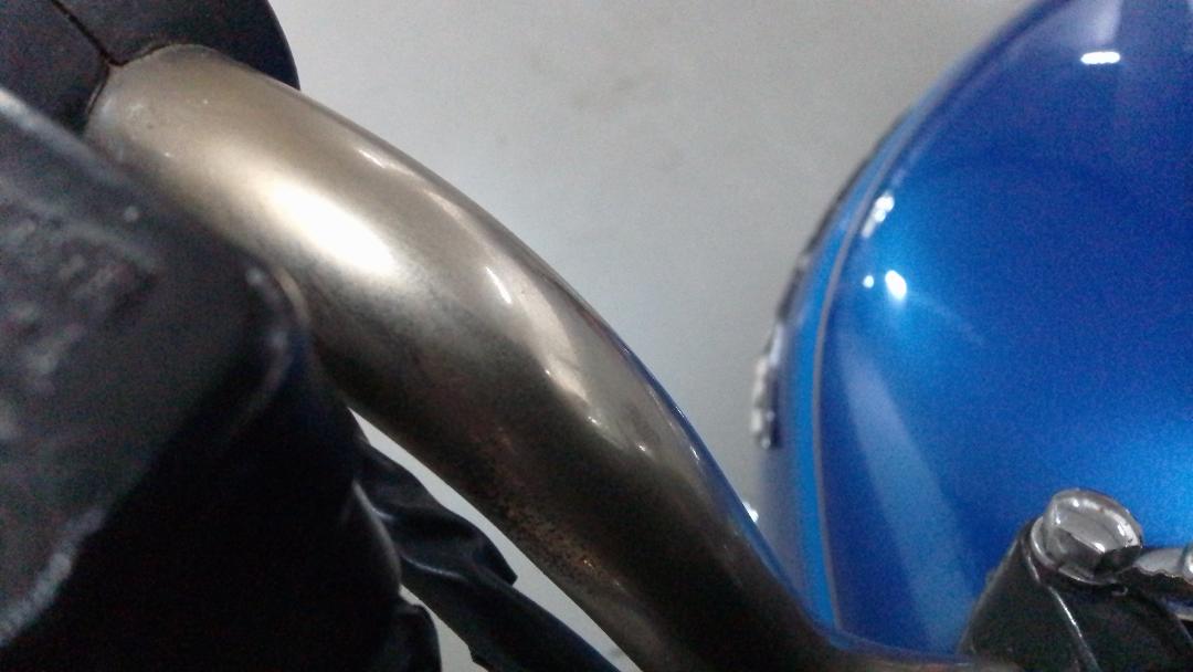 Well, filling the brake master cylinder, I poured a little brake fluid on the handlebar, I cleaned it with a paper cloth, as I had always done other times that had happened to me. After a few days I realized that I had lost the chrome in the stained area.