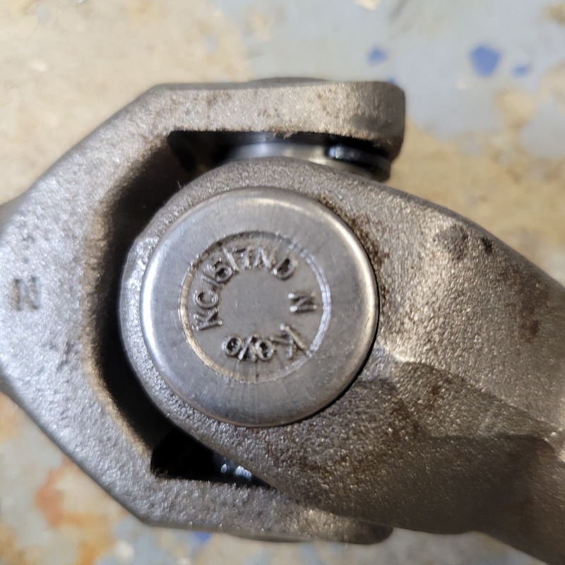 Call it a drive shaft or as Kawasaki calls it a propeller shaft, according to Kawasaki, it's not serviceable and all you can do is replace it Well, it has a universal joint which measures 63mm outside bearing cup to bearing cup and the bearing cups are 25mm in diameter. The universal joint installs just like a universal joint on a car, so it's a no brainer to remove and replace or one could pop off a bearing cap and grease as a routine, which is what I did.