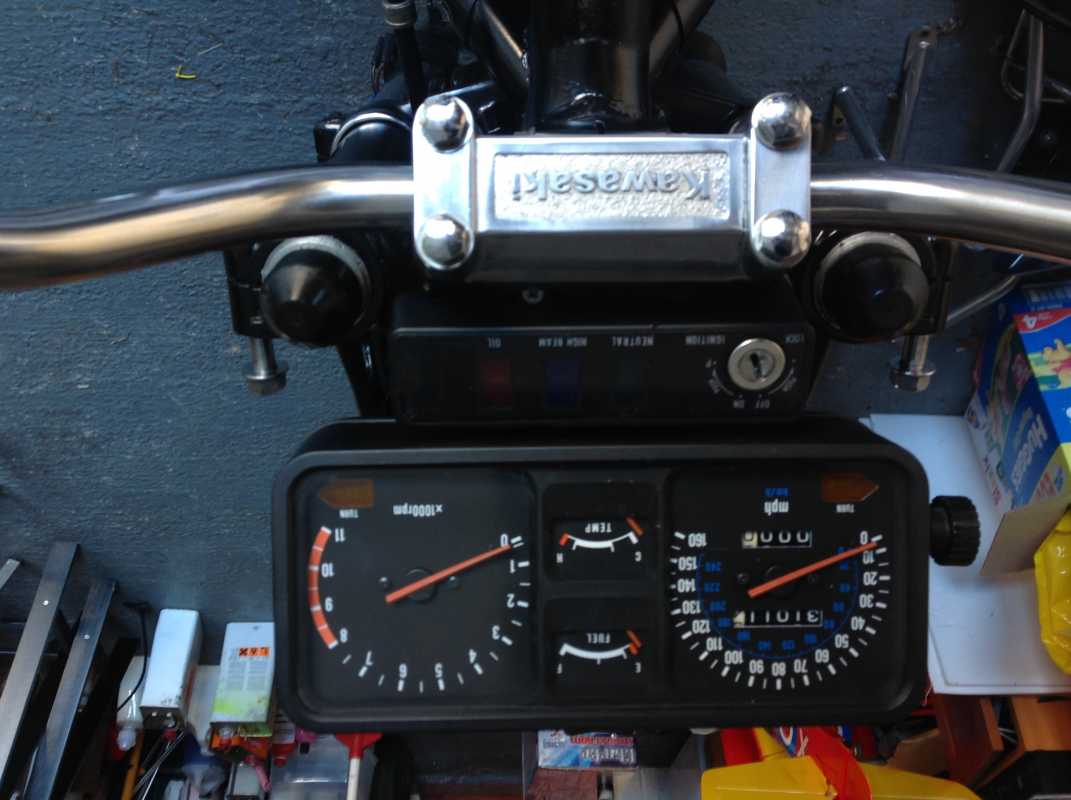 9 years 7 months agoBinnacle and warning panel back on. Bars have been polished. All connectors and wires cleaned and looking ok. The top and bottom yokes have been painted as have the headlight hangers. The head bearings seem ok so I have left them alone for now. The fork seals also seem to be ok so I will give them the benefit of the doubt- for now.